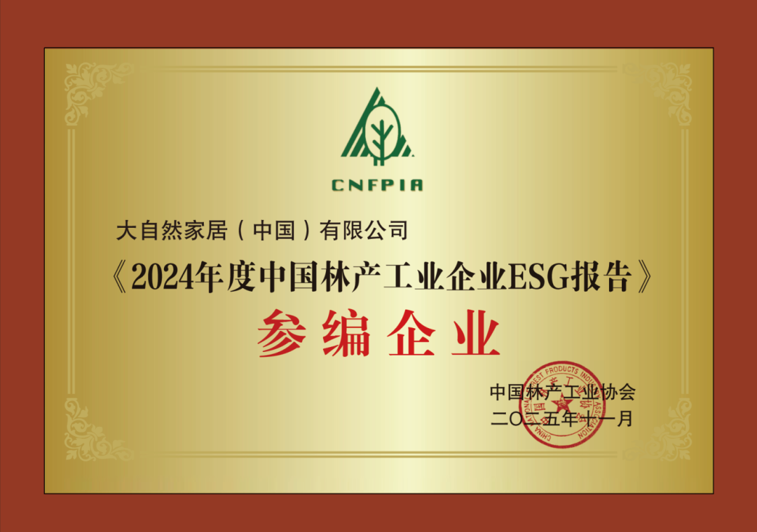 11 月 12 日,2025 全球飾面大會隆重召開,大自然家居應(yīng)邀參會,與近千家名企共話行業(yè)發(fā)展趨勢、分享創(chuàng)新成果。會上,由中國林產(chǎn)工業(yè)協(xié)會主導(dǎo)的《2024 年度中國林產(chǎn)工業(yè)企業(yè)ESG報(bào)告》正式發(fā)布,大自然家居憑借突出貢獻(xiàn)獲頒參編證書,并在會上同步推出《大自然家居 2024 年社會責(zé)任報(bào)告》,全面展現(xiàn)企業(yè)在綠色發(fā)展、社會責(zé)任等領(lǐng)域的實(shí)踐與成效。